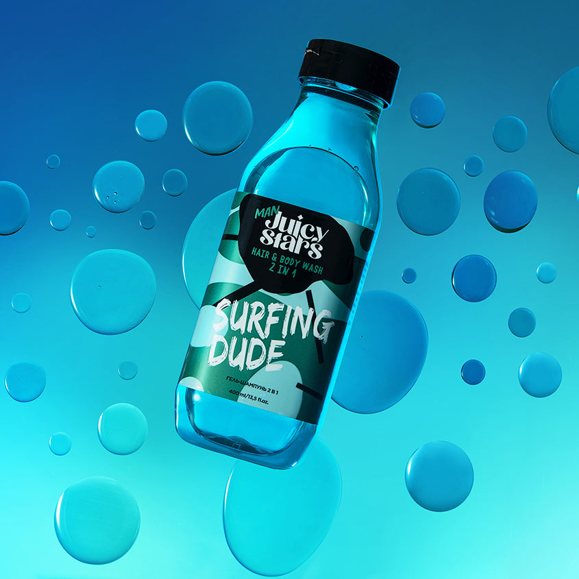 Can you smell it? The sea and adventures. Imagine stepping out with your surfboard to the ocean, a gentle breeze blowing, and you're ready to dive in. Think about what excites you and don't waste time on trivialities. This gel-shampoo solves all issues at once: for both skin and hair. Catch the wave!
