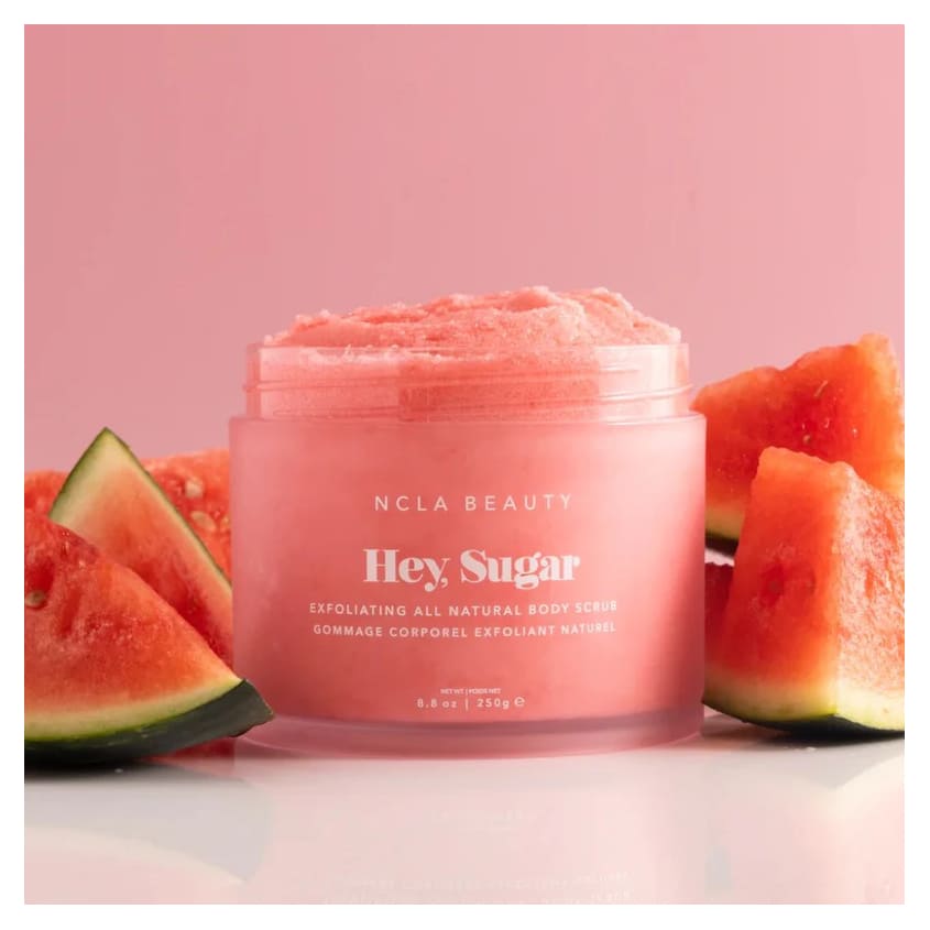 You got the juice! Uncover glowing skin with Hey Sugar Body Scrub's all natural ingredients that exfoliate and hydrate. This watermelon scented body scrub is like refreshing drink for your skin!