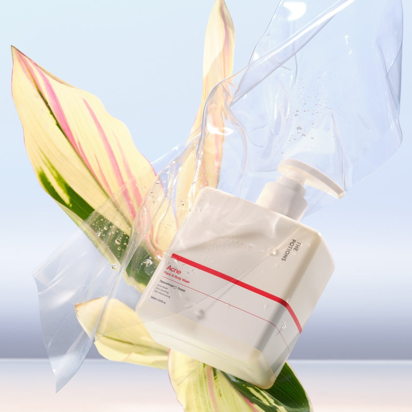 THE POTIONS multifunctional cleansing agent with 0.2% salicylic acid and tea tree leaf extract is specially designed to combat blackheads and acne not only on the face but also on the body. Salicylic acid exfoliates dead skin cells and cleanses pores, while tea tree extract soothes inflammation and promotes faster healing. The hypoallergenic formula with a pH of 6 leaves no feeling of tightness or dryness after use. The gentle foam effectively removes excess sebum, cleansing pores and reducing irritation.