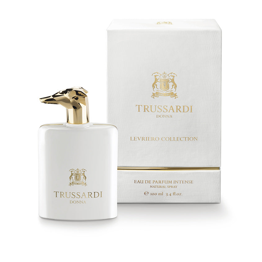 DONNA is a captivating and enticing fragrance from TRUSSARDI. The eau de parfum is presented in a new collectible bottle with a cap shaped like the silhouette of a greyhound – the brand's symbol. DONNA LEVRIERO COLLECTION INTENSE is distinguished by a concentrated aromatic base. The fragrance has become more intense and long-lasting. The eau de parfum belongs to the oriental-floral fragrance group, awakening a woman's natural sexuality. It is a scent for confident and luxurious women. The top notes – a skillfully selected combination of yuzu, citrus, and aquatic fruits – form a luminous fruity aura. The heart notes bloom with the velvety femininity of orange blossom, jasmine tea, and water lily. The 'trail' releases the deep sensuality of woods: cedar, sandalwood, white patchouli, and vanilla. The enchanting fragrance composition wraps its wearer in an aura of mystery and grace. The Trussardi Donna and Trussardi Uomo bottles from the Greyhound collection are two small works of art that can be collected and cherished. The heraldic crest and name shine in gold at the center of the bottle. The sweet, yet not cloying white color reminds us of the sensuality of the modern woman, who can communicate with any man, possessing a calm strength and self-confidence.